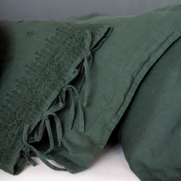 ![[allvariants]: Linen pillowcases in eucalyptus with matching sheets with a rumpled duvet in midnight blue embroidered linen - cropped three-quarter angle.](http://bellanotteoverstock.com/cdn/shop/files/Linen_Pillowcase_Bella_Notte_10_178452b5-ab7f-417e-a272-e46e251de825.jpg?v=1698687100&width=1200)
